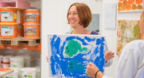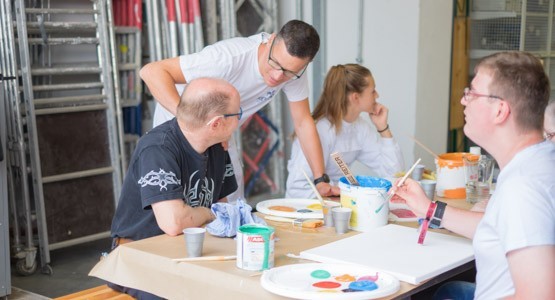 Auch dieses Jahr hatten wir wieder das Vergnügen einen kreativ fröhlichen Nachmittag mit einer motivierten Truppe der Lebenshilfe Münzkirchen zu verbringen. Angeleitet von der Künstlerin Helga Hofer und der praktischen Unterstützung durch Malermeister David Reiter regnete es wieder einmal einen Nachmittag lang bunte Kunstwerke.