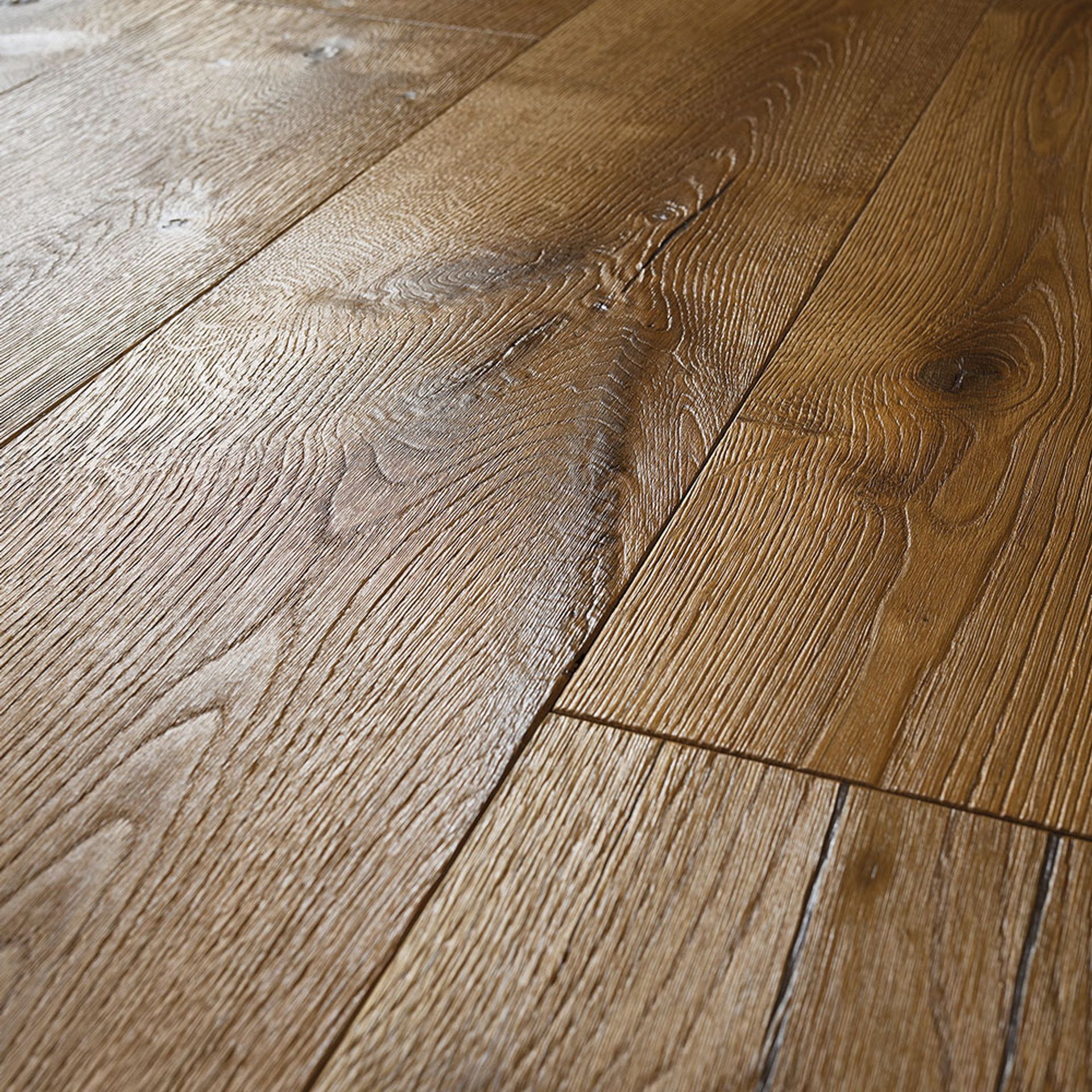 In Sachen Holzoberfläche gibt es ebenfalls mannigfaltige Gestaltungsoptionen. Wer es ruhig und klassisch mag, wird sich vielleicht für Dielen mit wenigen Ästen entscheiden. Gerade in der Oberflächenbehandlung begeistern jedoch auch viele Varianten. Antik gealtert vielleicht? Oder handgehobelt? Auch gebürstete, mit Sägeschnittoptik versehene, gekalkte oder gehackte Designs sind im Vormarsch.